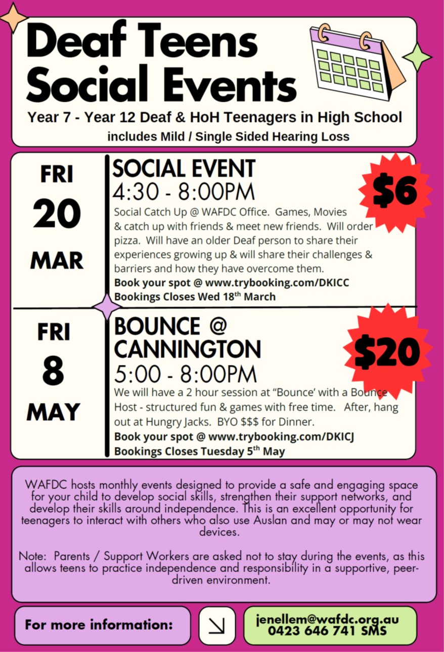 Deaf Teens Social Events in March and May